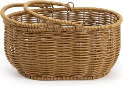 - Hout, textiel; mand van synthetisch “riet”