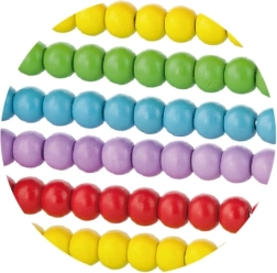 Tien rijen met opvallend gekleurde kralen helpen kinderen hoeveelheden, patronen en basisrekenbewerkingen visueel te begrijpen.