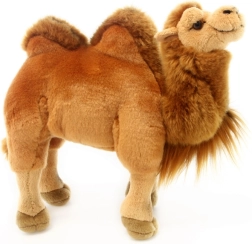 Deze pluchen kameel is een realistisch uitgewerkt speelgoed dat indruk maakt door zijn details en kwaliteit. Hij is gemaakt van een combinatie van kort- en langharig pluche, wat hem een levensechte uitstraling geeft. Hij heeft zwartbruine glazen ogen en een zachte, vriendelijke snuit. Dankzij de stevige poten kan de kameel zelfstandig staan, waardoor hij een stijlvol decoratief element vormt.