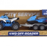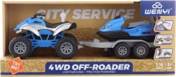 Deze gedetailleerde quad met aanhanger en scooter brengt kinderen volop actie en verbeelding. Dankzij de licht- en geluidseffecten is het spel nog realistischer en boeiender. De set bevat een aanhanger voor het vervoer van de scooter, zodat kinderen hun eigen verhalen en avonturen kunnen creëren.