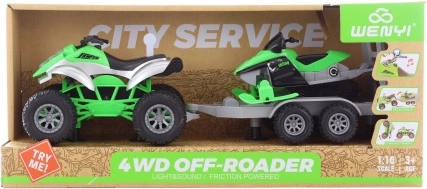 - Complete set – quad, aanhanger en scooter.