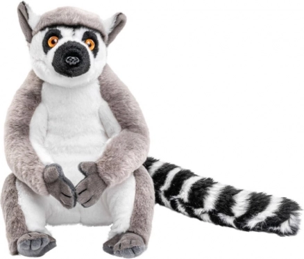 Een zacht pluchen lichaam, opvallende ogen en een gestreepte staart zorgen voor een levensechte look waar kinderen dol op zijn.