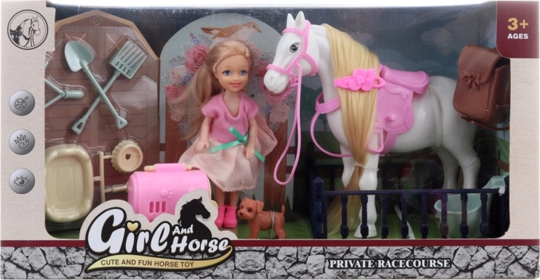 De pop en het paardje zijn verpakt in een mooie doos van 36,5x19x12 cm, ideaal als cadeau of speelgoed voor onderweg. Geef de fantasie van uw kinderen vleugels met deze prachtige set!