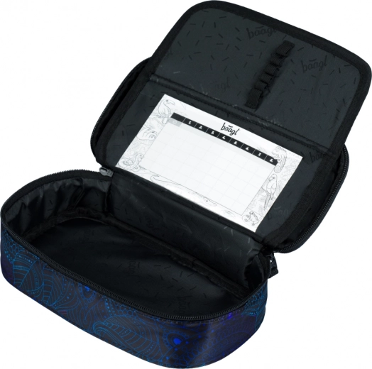 De etui is voorzien van een uitklapbaar binnenvak en een vakje voor het lesrooster, waardoor een efficiënte organisatie van schoolbenodigdheden mogelijk is.