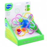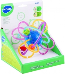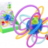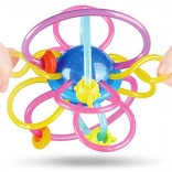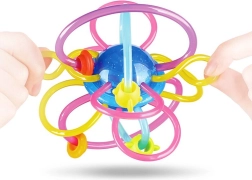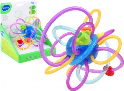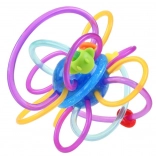 Door de flexibele elementen kan het kind het speelgoed gemakkelijk vasthouden. Het gladde en zachte oppervlak van de flexibele spiralen zal het tandvlees van de baby uitstekend masseren. De kleurrijke kralen geplaatst op de flexibele spiralen glijden gemakkelijk over het speelgoed.