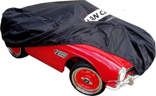 Waterdichte beschermhoes voor een elektrisch kinder voertuig in maat M, beschermt tegen stof, vuil en krassen. Gemaakt van elastisch polyester dat zich aanpast aan de vorm van het voertuig en dankzij de praktische aantrekfunctie snel en comfortabel te bevestigen is. Zwarte uitvoering met stijlvol logo en afmetingen 110 × 65 × 55 cm.