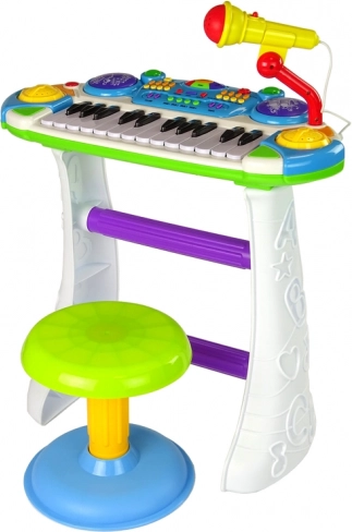 Elektronische kinderpiano met microfoon en kruk – blauw