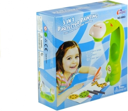 Deze kinderprojector in giraffe-vorm projecteert afbeeldingen op papier of muur, zodat jonge kunstenaars stap voor stap gemakkelijk kunnen leren tekenen. De bediening is eenvoudig en intuïtief – plaats een schijf, kies een motief en druk op de knop van de projector. Dankzij de verstelbare projectiehoek is hij geschikt voor gebruik op tafel of om op de muur te projecteren.