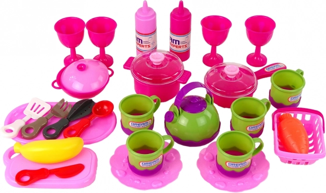 Deze roze keuken set is de perfecte aanvulling voor kleine hulpen in de keuken. Stimuleert de verbeelding en de fijne motoriek van kinderen, terwijl het urenlang speelplezier biedt. Stijlvol design en een snoeperig roze kleur nodigen elke kleine kok uit tot fantasierijk spel.