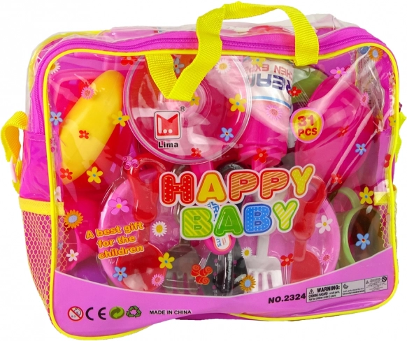 Afmetingen verpakking: 26 cm x 20 cm x 8 cm. De volledige set is gemaakt van milieuvriendelijk en kindveilig plastic, dat echt servies en keukengerei simuleert.