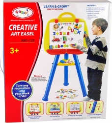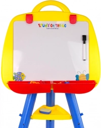 Het bord is voorzien van clips die het mogelijk maken papier vast te klemmen om te tekenen als op een echt schildersdoek. Er zijn ook twee containers voor kunstbenodigdheden zoals krijtjes en markers. Het bord kan worden aangepast in hoogte, afhankelijk van de lengte van uw kind.