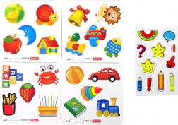 In de verpakking vindt u alles wat nodig is voor eindeloze uren spelen en leren: magnetisch bord, magnetische grote en kleine letters, magnetische cijfers en wiskundige tekens, droge marker met spons, spons, gekleurde kaarten met afbeeldingen, laden en planken voor accessoires.