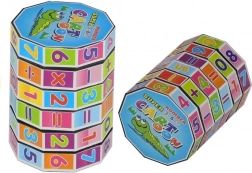 De kleurrijke cilindervormige puzzel met draaibare ringen helpt kinderen spelenderwijs de basis van wiskunde onder de knie te krijgen. Dankzij de cijfers en tekens oefenen kinderen optellen, aftrekken, vermenigvuldigen en delen – altijd en overal. De duurzame uitvoering van veilige materialen voldoet aan norm EN 71, is geschikt vanaf 3 jaar en de compacte afmetingen 7 × 5,5 cm maken het een ideaal hulpmiddel voor op reis.