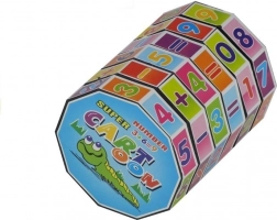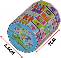 Deze slimme en leuke puzzel in cilindervorm trekt de aandacht met zijn felle kleuren en eenvoudige principe: draai aan de afzonderlijke ringen met cijfers en wiskundige symbolen en maak de juiste sommen. Zo leren kinderen op natuurlijke wijze rekenen en versterken ze hun rekenvaardigheden, ontwikkelen ze logisch denken, concentratie en fijne motoriek – kortom leren door te spelen.