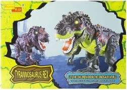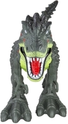 Grote lopende dinosaurus T‑Rex op batterijen voor kleine liefhebbers van de prehistorie. Na het plaatsen van batterijen beweegt hij, zwaait met zijn hoofd en staart en dit gaat gepaard met licht- en geluidseffecten. Hij heeft lichtgevende ogen en tong die tijdens het lopen oplichten. Een ideaal cadeau voor elke dinosauruscollectie.