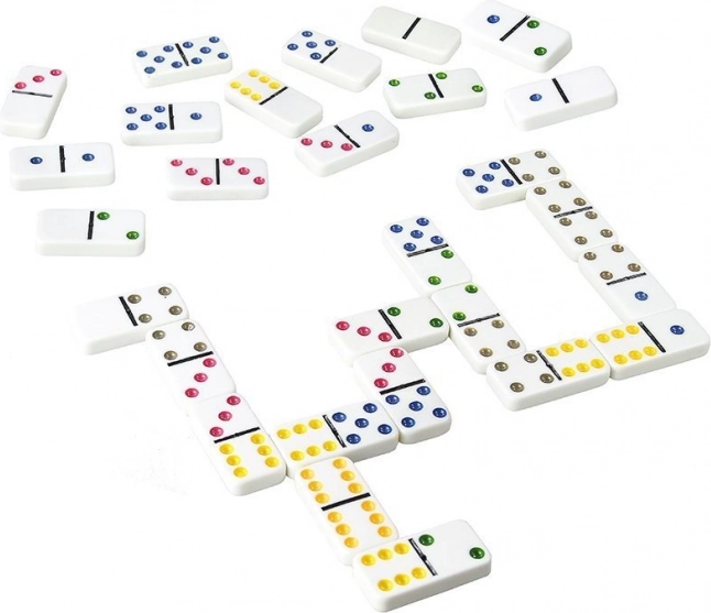 De set bevat 28 stenen (double-6) die alle combinaties van 0–6 dekken. Het spel heeft eenvoudige regels, ontwikkelt logica, geheugen en opmerkzaamheid en leert kinderen geduld en planning. Dankzij de gekleurde ogen zijn de stenen gemakkelijk te onderscheiden en is het spel ook toegankelijk voor jongere spelers.