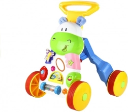 De interactieve nijlpaard-duwloopwagen is de ideale metgezel voor kleine ontdekkers vanaf 12 maanden. Het speelse paneel met knoppen, rammelaars en spiegeltje moedigt bewegen aan, terwijl de stille rubberen banden zorgen voor soepel rollen over de vloer zonder krassen en lawaai. De stabiele basis en de verstelbare handgreephoogte ondersteunen een correcte lichaamshouding tijdens het lopen.
