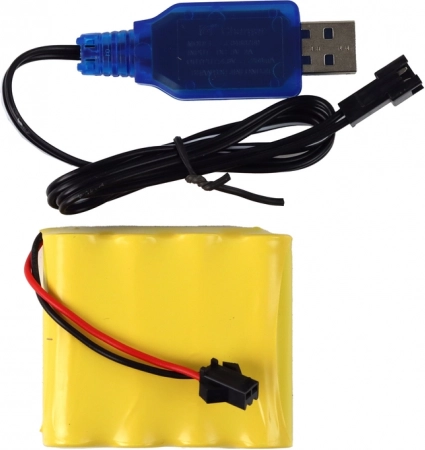 .De tank wordt gevoed door een 4,8V accu die bij de set is inbegrepen. De accu wordt geleverd met een originele oplader.