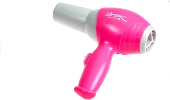In de verpakking zit ook een kinderföhn op batterijen, een kam, “parfum”-flesjes, kralen en andere modieuze accessoires – alles voor realistisch maar veilig spelen van een beauty salon. De kleurrijke uitvoering en decoratieve details vallen meteen op en ondersteunen de creatieve en sociale vaardigheden van kinderen.