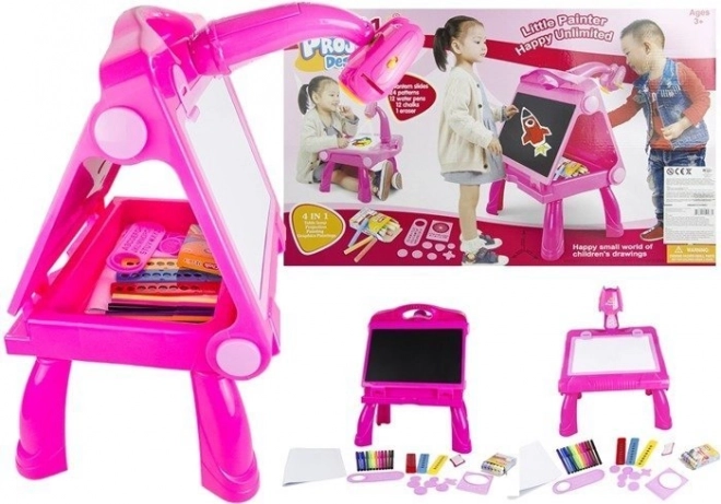 Het plezier wordt verzekerd door de projector, die wordt aangedreven door 4 AA-batterijen van 1,5 V (niet inbegrepen). Het is gemaakt van veilige, gecertificeerde materialen voor een lange levensduur en solide constructie. Alle onderdelen hebben een CE-certificaat. Het bord zelf wordt geleverd in een kleurrijke doos met handvat voor eenvoudig transport.