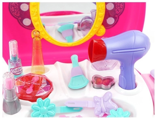 Uw kleine ontdekker zal zeker dol zijn op het spelen met deze kappersset! Met deze set kunnen kleine dames zich echte stylisten voelen, experimenteren met cosmetica en zorgen voor de schoonheid van niet alleen hun poppen, maar ook van zichzelf.