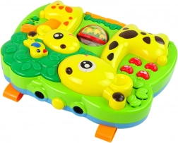De afmetingen van het speelgoed zijn 17,5 cm x 22,5 cm x 6 cm, terwijl de afmetingen van de verpakking 31 cm x 26 cm x 8 cm zijn. Dit product is bedoeld voor kinderen vanaf 12 maanden en vereist vier AA 1,5 V-batterijen, die niet zijn inbegrepen.