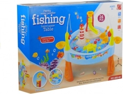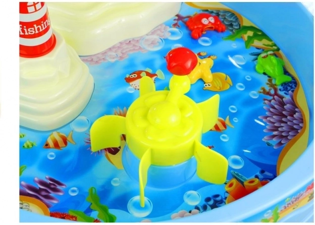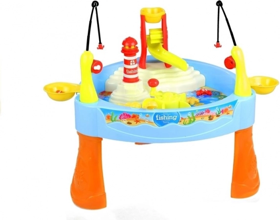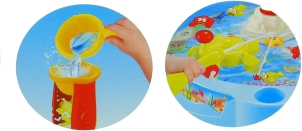 Ontdek de wereld van waterspel, waar kinderen met magnetische hengels visjes, krabben en andere zeedieren vangen. Met een druk op de vuurtoren gaan de lampjes aan en klinkt een vrolijke melodie, en de waterstroom laat de watermolen draaien en vormt een waterval. Het spel is intuïtief en geschikt voor jongere kinderen – solo of in wedstrijdjes met vrienden of ouders.