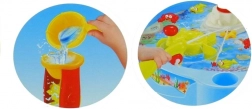 Stromend water zet het gele molentje in beweging en creëert een kleine waterval. Kinderen ontdekken oorzaak-gevolg en oefenen fijne motoriek tijdens het gieten van water.