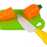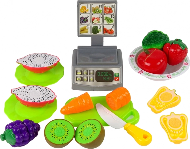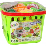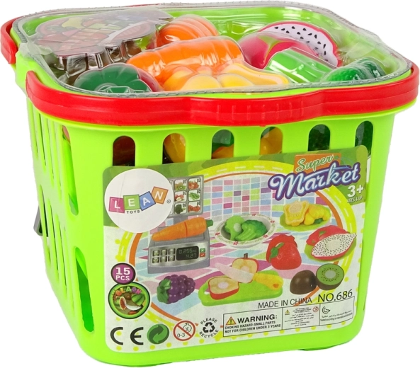 De set bestaat uit een groene mand gevuld met diverse soorten fruit en groenten, verder een kom, borden, mes, snijplank en winkelweegschaal. De etenswaren kunnen op de meegeleverde snijplank worden gelegd en met een speciaal mes worden gesneden. De helften van het fruit en de groenten kunnen worden gewogen op een weegschaal die een exacte kopie is van die in supermarkten, en daarna op borden worden gelegd of in de kom worden gemengd. Na het proeven kunnen de helften van het fruit en de groenten eenvoudig en direct weer aan elkaar worden bevestigd. Hoe? Alle etenswaren zijn voorzien van speciale klittenbandstroken, waardoor ze herhaaldelijk kunnen worden gescheiden en gecombineerd.