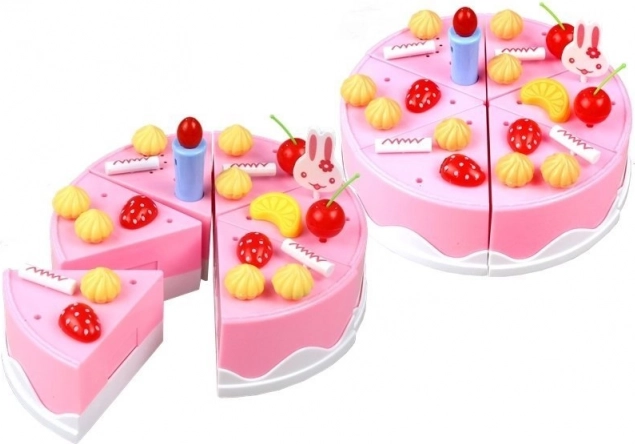 In totaal bevat de set 75 onderdelen – naast de taart ook gebakjes, koekjes, rolcake, bordjes, bestek, kaarsjes en veel decoraties die eenvoudig in de taart kunnen worden gestoken. Kinderen oefenen fijne motoriek, samenwerking en communicatie tijdens gezamenlijk spel als bakker of op een verjaardagsfeestje.