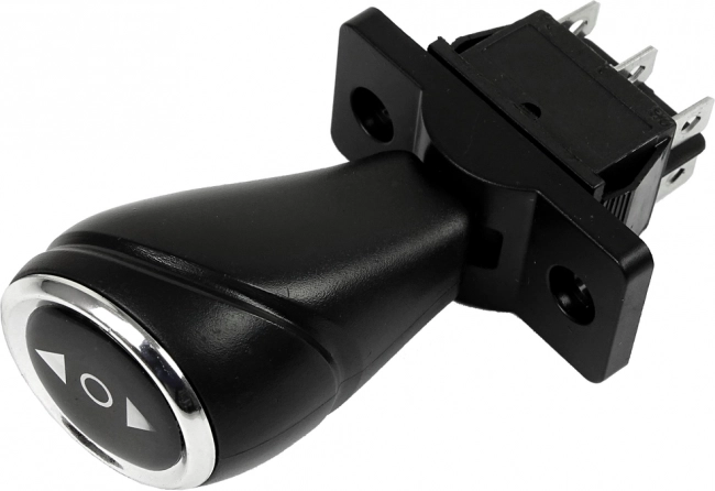 Betrouwbare drie-standenschakelaar voor elektrische voertuigen waarmee je eenvoudig de rijrichting bedient: vooruit, stop en achteruit. Dankzij de niet-zelfterugkerende constructie blijft de hendel in de gewenste positie, wat het comfort en de veiligheid tijdens het gebruik verhoogt.