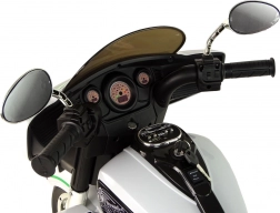 Elegante grijze uitvoering met chromen details, helder windscherm en spiegels geeft deze elektrische driewieler een premium uitstraling. Dankzij de robuuste afwerking en brede wielen is hij ideaal voor de eerste rijervaringen van kinderen – veilig, comfortabel en met een maximale dosis plezier.