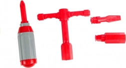 De set bevat plastic gereedschappen die de ontwikkeling van fijne motoriek en creatief spel ondersteunen.