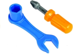 Sleutel en schroevendraaier stimuleren fijne motoriek en worden moeiteloos bijgeleverd met het speelgoed.
