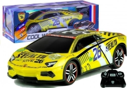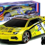 Deze sportieve RC-auto biedt de dynamische look van een racewagen en eenvoudige bediening voor kinderen vanaf 3 jaar. Dankzij het duurzame PVC materiaal en de rubberen wielen kan hij over verschillende ondergronden, terwijl de 27 MHz frequentie helpt storingen tijdens het rijden te minimaliseren. Realistische stickers en de gele carrosserie benadrukken het racekarakter.