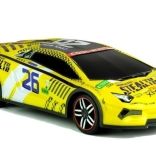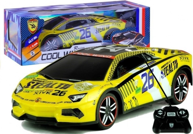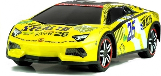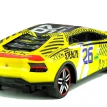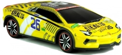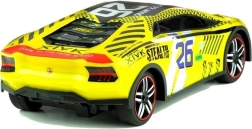 De gele carrosserie met gedetailleerde stickers en nummer 26 in schaal 1:14 oogt levensecht en nodigt uit tot racen thuis en buiten.