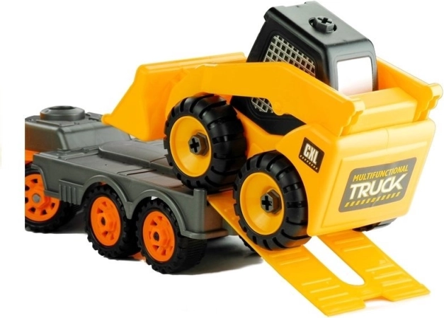 In de set zitten ook gereedschappen, zoals een schroevendraaier met verwisselbare uiteinden, waarmee kinderen verschillende onderdelen kunnen losschroeven, zoals wielen, de bak of de aanhanger. Fijne details en donkere ramen vergroten de aantrekkingskracht van deze speelgoedvoertuigen. Beide voertuigen zijn gemaakt van veilige, gecertificeerde materialen die zorgen voor langdurig en veilig spelen.