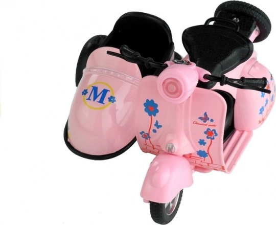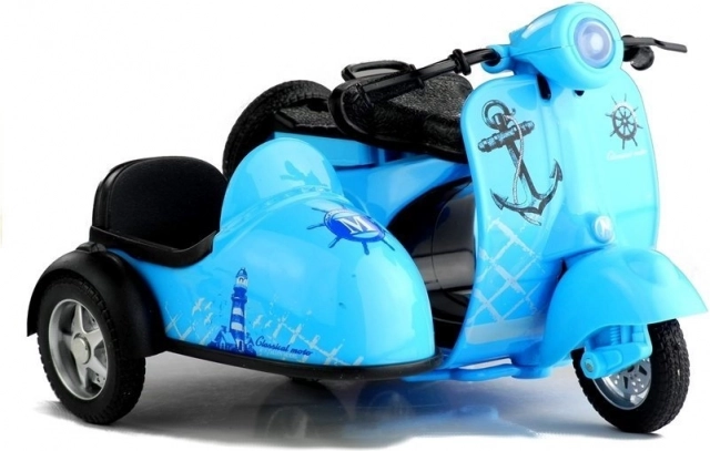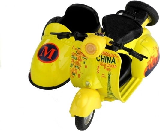 Metalen model van een scooter met zijspan 1:14 met licht en geluid, 3 kleuren