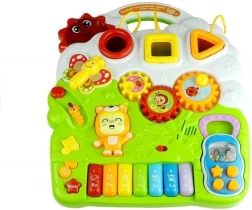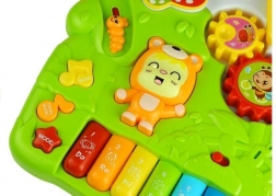 Kleurige toetsen 1–7, tandwielen en oplichtende vormen stimuleren de fijne motoriek, het ritme en het herkennen van kleuren en vormen. Het zonnetje knippert op het ritme van de muziek.