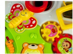 Stabiele steun voor de eerste stapjes en een los te gebruiken interactief paneel met lichtjes, geluiden en volop activiteiten voor leren en spelen, thuis en onderweg.