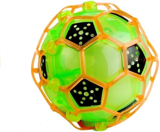 Deze leuke en lichte bal ziet eruit als een voetbal, verborgen in een veerkrachtig plastic rooster. Na activatie licht hij op met kleurrijke lampjes, maakt vrolijke geluiden en begint onvoorspelbaar zijwaarts te springen – alsof hij danst. Kinderen krijgen veel beweging, trainen reactievermogen en coördinatie, en het spel is tegelijk vriendelijk voor meubels en vloer.