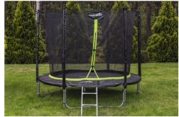 De trampoline LEAN SPORT PRO met een diameter van 305 cm is een ideale keuze voor de tuin. Het hoge veiligheidsnet (ca. 180 cm) houdt springers veilig binnen, terwijl het precies gekozen aantal veren de sprongen uitstekende dynamiek geeft. Het robuuste frame van hoogwaardige, gecertificeerde materialen is corrosiebestendig en bestand tegen slecht weer, zodat u de trampoline niet bij elke weersverandering hoeft te demonteren.