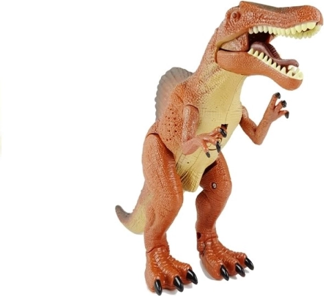 Het speelgoed heeft een lange, rechte schedel en een massief, gespierd postuur. Het wordt gevoed door 1,5V AA-batterijen, die bij de set zijn inbegrepen. Na activering begint de grote dinosaurus te stappen en te brullen. Lichteffecten, zoals knipperende ogen, versterken deze buitengewone ervaring nog meer.