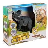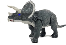 Maak kennis met de perfecte replica van een grote Triceratops, die 125–100 miljoen jaar geleden leefde. Dit model is ontworpen met een opvallende schedel en een massieve, gespierde bouw. Aangedreven door drie "AA"-batterijen van 1,5 V, begint de dinosaurus na het inschakelen te lopen, brullen en met het hoofd te bewegen, wat een realistische ervaring biedt dankzij lichteffecten zoals knipperende ogen.