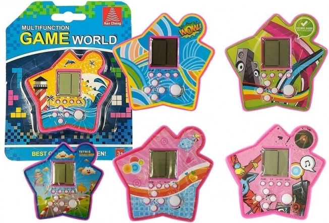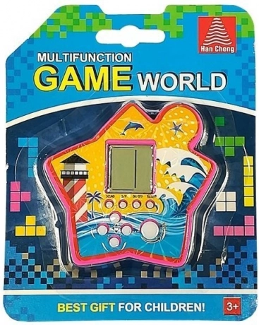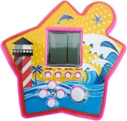 Een leuk pocketspel in de vorm van een ster brengt de klassieke Tetris in een kleurrijke en lichte uitvoering. Dankzij de compacte afmetingen neem je het gemakkelijk mee naar school, in de bus en naar huis. De bedieningsknoppen maken draaien van blokjes, pauzeren, geluid uitschakelen en resetten mogelijk. Ideaal voor het trainen van logica en snelle reacties, geschikt voor kinderen vanaf 3 jaar.