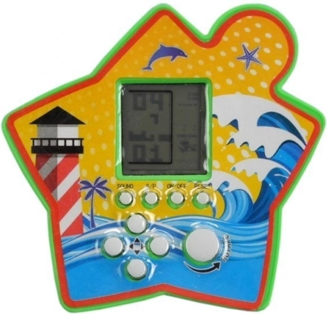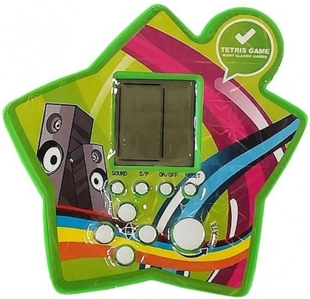 Deze kleurrijke pocketconsole in stervorm zal alle fans van logische spellen blij maken. Op het overzichtelijke lcd-scherm stapel je vallende blokjes, vul je rijen en verhoog je je score. Met elke verwijderde rij neemt het tempo toe, wat zorgt voor dynamische en verslavende gameplay. Je ziet vooraf welk blokje volgt, zodat je de volgende zet kunt plannen en je logica en concentratie kunt versterken.