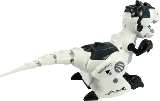 Ontdek de spannende wereld van dinosaurussen met een mechanische T‑Rex met afstandsbediening. De dinosaurus heeft opvallende lichtelementen en produceert realistische geluiden die de spelbeleving versterken. Dankzij de robuuste constructie en de moderne combinatie van wit, zwart en grijs oogt hij als een echte futuristische creatie.