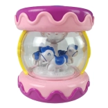 De trommel is uitgerust met een carrousel met paardjes binnenin, wat zorgt voor een interactieve visuele ervaring voor kinderen.