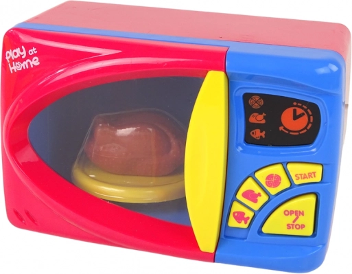 Onze magnetron voor kinderen is een geweldige keuze voor kleine koks die meer willen leren over keukenapparaten. Deze kleurrijke magnetron is uitgerust met realistische knoppen en accessoires die fantasiespel ondersteunen. Je kind kan met de knoppen met vis-, kip- en pizzapictogrammen de opwarmtijd kiezen en het programma starten met de knop START. De knop OPEN/STOP stopt het opwarmen en opent de deur.