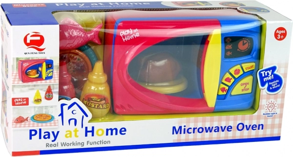In de set zitten plastic speeltjes zoals een vis, gegrilde kip, pizza en flesjes ketchup en mosterd. Na het verwijderen van de veiligheidspen aan de achterkant van het speelgoed en het kiezen van een programma gaat het interne lampje aan en begint het bord met het eten te draaien, waardoor het gebruik van een echte magnetron wordt nagebootst.